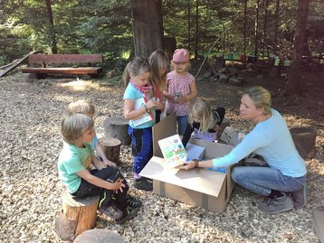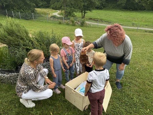 Kindern ein Verständnis für Natur und Umwelt zu vermitteln und ihnen die faszinierende Welt des Wassers und dessen kleinen und großen Bewohnern näherzubringen, ist das Ziel von Naturbildung. Mit der Wasser-Experimentier-Kiste können die Kinder des Kinderhaus Regenbogen spielend lernen und Verstehen lernen. Teichkescher, Bestimmungskarten zu Wassertieren und -pflanzen, der Biber Balduin, Erzählsteine und weitere Utensilien bilden den Inhalt einer rollenden Wasser-Experimentier-Kiste aus Holz und macht den nächsten Ausflug zum nahgelegenen Dobelbach noch faszinierender. Das facettenreiche pädagogische Begleitheft beinhaltet Methoden- und Spielbeschreibungen rund um das Lebenselixier Wasser und greift die Materialien in der Experimentier-Kiste auf.