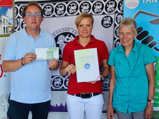 Botschafterin Kathleen Pfennigsdorf übergab gestern einen Scheck in Höhe von 500€ an den Sperlingshof Remchingen.